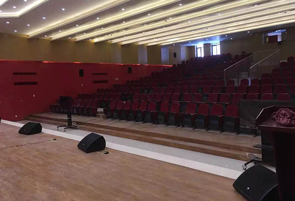 阿坝州马尔康特警总队多功能厅音响系统由厂家资深工程师提供技术支持,已正常使用一年多,舞台音响系统运行非常稳定,主音箱选用沐鸣2LAB系列双八寸线阵音响,LAB-608可以和LAB-6212B一起吊挂,也可以在LAB-6212B上面堆叠LAB-608,组成不同的曲线舞台音响系统。