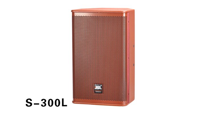 1:单十寸音箱S-300L,两路分频系统,基本参数:低频:1x2.5寸VC 10寸(65芯170磁)低失真高效率中低纸盆单元;高频:1x1.75寸VC(44芯100磁)压缩驱动高音;频响:50Hz-20kHz(±3dB);灵敏度:96dB SPL(IW@lm);阻抗:8 ohms;功率:300w(额定);音箱体外观:玫瑰金(所有展出颜色可选)。