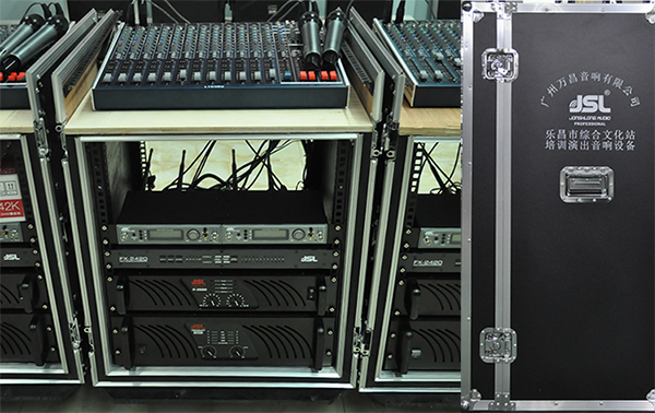 广东省乐昌文广新局为建设市里17间镇级综合文化站,向沐鸣2音响厂家购置17套文化下乡设备,每一套设备包括双十五寸主音箱及功放、十二寸辅助音箱及功放、真分集无线话筒、调音台、反馈抑制器、DVD播放机等设备。沐鸣2音响厂家全程协助市政府开展配送工作,将17套设备送到基层手上,并授课传授调音技巧。