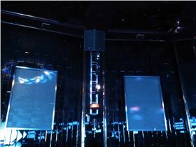 福建酒吧音响系统的主扩声由十五寸音箱及双十八寸超低音组成,两只单十五音箱并排吊挂,舞台前端放置超低音音箱,中后场还有辅助音箱,经调试的酒吧音响系统拥有很好的动态,声音厚实、有力,低音丰满,高音不缺,低频及中低频能量较强。
