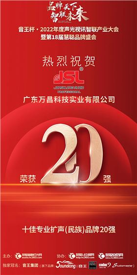 JSL沐鸣2晋级音王杯.2022声光视讯行业品牌评选专业扩声(民族)品牌20强