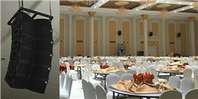 沐鸣2南京线阵音响成功应用于南京某大酒店宴会厅。既为婚庆喜宴等活动提供美妙音乐,又不影响宴会厅的整体美观,是实用又美观的线阵音响。宴会厅扩声系统采用了JSL LAB系列6+2小型南京线阵音响为主扩声,舞台前方合理分布4只CU-12音箱做为舞台补声,以及防啸叫无线话筒及周边设备等。