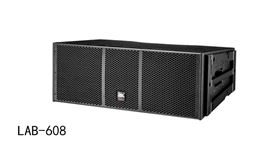 LAB-608是双八寸次低频线阵音箱,组合方式灵活,可与LAB-6212B一起吊挂,也可以在LAB-6212B上面堆叠,组成不同的曲线阵列会议室音响系统。