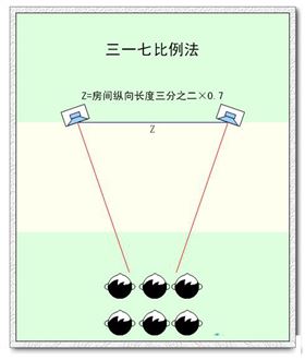 要点一:房间的长度要均分为三等分。音响摆在1/3的长度处,音响之间的间隔要位房间的2/3长度是0.7倍。