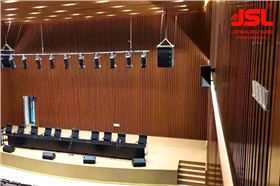 沐鸣2团队经过对本厅的使用功能分析,考虑使用的音响设备、场地容积等因素,选用了JSL双八线阵音响作为主音箱,该产品声压叠加,衰减小,传输远,精准投射,拥有良好的声场分布和稳定的声音传递,可为多功能厅使用者提供优质体验。