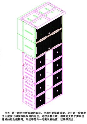 线阵音响组合一般有五种组合方式,如:图一、图二、图三、图四、图五。