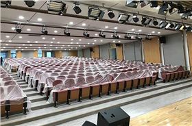 陕西延安新区二中的多功能厅为阶梯式场所,精致软包装修,为确保后场的清晰度和前后场声压级的均匀度,音响系统采用沐鸣2专业音响设备,系统包括主扩声LT15,辅助音响LT12,12寸台唇补声,返听音响CU12,双十八寸低音炮,及功率匹配的MH系列功放,32路数字调音台及周边设备。经调试过的灯光音响系统将为二中提供炫彩震撼的效果。