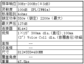 系统类型:15寸线阵系统次低频音箱;