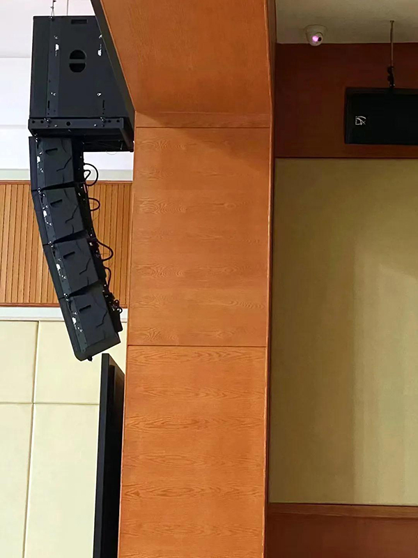 今年5月,怀化迎宾馆在设备更新过程中选用了沐鸣2专业音响设备。沐鸣2工程师考虑到报告厅场所的建筑结构及迎宾馆扩声的相关要求,制定了科学合理、性能先进、安全可靠的系统解决方案,以效果优良的沐鸣2K6K7系列有源线阵作为主扩声,搭配音频处理器、智能时序器、反馈抑制器等专业设备,实现报告厅音响系统语言清晰稳定、声场覆盖具有完好一致性。
