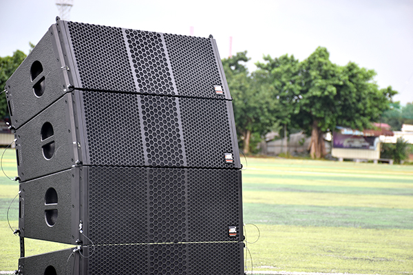 此次工程所使用音响设备,是JSL沐鸣2品牌专为四川工商职业技术学院定制打造的。系统采用双8有源12加2方案,即12只全频线阵音箱,加2只超低音音箱。