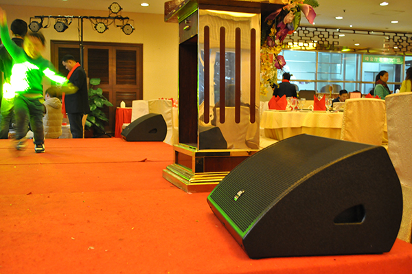 此次主题晚会在室内进行,舞台音箱采用沐鸣26+2线阵音响系统,经专业音响调试的整体效果达到了设计要求的效果,活动完美结束后,音响系统的稳定性也受到甲方和主持人的赞扬。