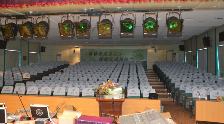 学校礼堂采用沐鸣2提供专业系统,AT系列音响清晰、嘹亮。MH系列功放失真度低,频率响应宽广;CM-1002无线手持麦克风外观大气时尚,信号稳定,具备先进的一键式"SCAN"自动频道搜索功能,能自动快速选取无干扰的频道,使用极为便捷;专业录音麦克风,频率响应宽,失真小,动态范围大,专业合唱完美适用;整套系统所实现的效果将会展现在校园活动及日常教学的方方面面,为回民中学的广大师生带来很好的音频效果体验。