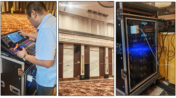 考虑到深圳珠江国际酒店宴会大厅空间大、活动类型多样,我司专业团队深入调研,采用线阵列音箱,均匀分布在宴会大厅四周,确保声音能够全面、均衡地覆盖每一个角落,无论是前排还是后排的宾客,都能有清晰的听觉体验。同时,配备了专业的音频处理设备,可根据不同活动场景快速调节音效。