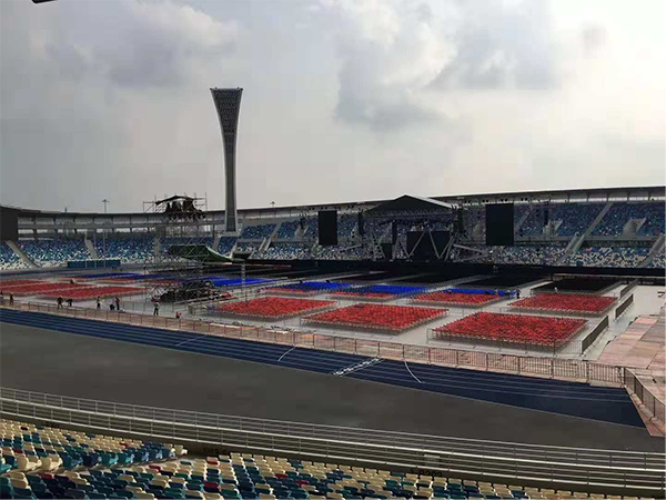 海口市全民健身活动中心的体育馆是集文化传播、文艺表演、大型演讲的现代化多功能体育场所,体现了一个单位的文化综合水平具有国际性、艺术性、经典性。此次项目,体育馆演出系统选用了沐鸣2专业线阵音响系统。体育馆的扩声系统不仅要能满足体育竞赛和政治集合语言扩声的要求,也应能满足一般的团体操等广场文体表演以及赛间播放音乐的音乐扩声要求。设计方案以体育馆的需求为主题与定位,充分考虑到体育馆的需求及未来发展需要,结合体育馆面积大、扩声范围广的特点,采用面向21世纪的先进扩声系统技术而制定的GL系列线阵音响系统。包括110只GL系列双12寸线阵音箱、30只双18寸超低音音箱、舞台返听音箱及功率匹配的功率放大器、调音台、时序器等周边及周边设备。为体育馆提供技术先进、性能稳定、功能齐全、使用方便的专业音响系统设备,满足专业国际体育比赛扩声、集会和大型开幕式扩声需求。